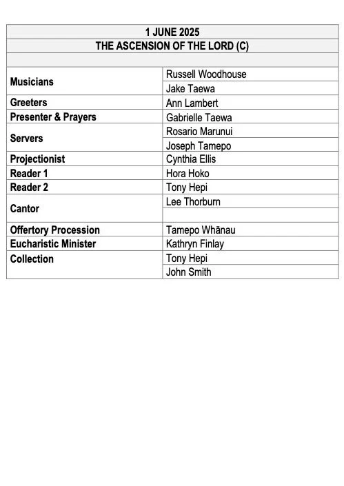 5pm Saturday Vigil Mass, Tūrangi | 9am Mass, Taupō