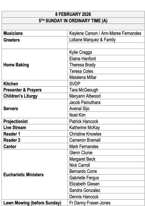 Sunday, 8 February: 5th Sunday in Ordinary Time