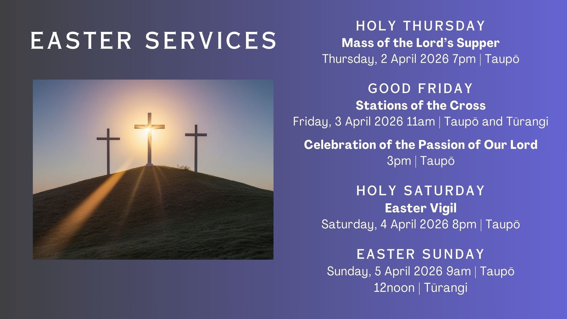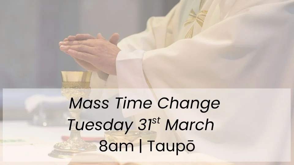 Due to Fr Danny attending the Chrism Mass at the Cathedral of the Blessed Virgin Mary on Tuesday 31 March, Mass in Taupō will be at 8am.