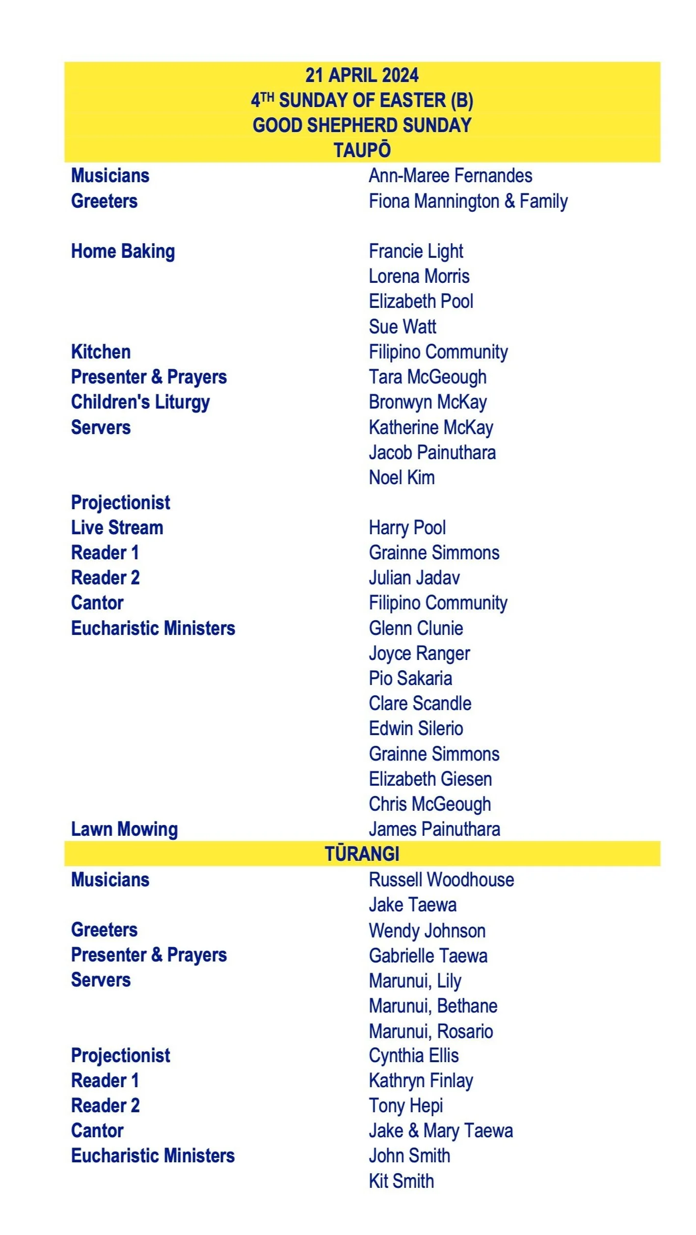 Wednesday: After Mass | Tūrangi