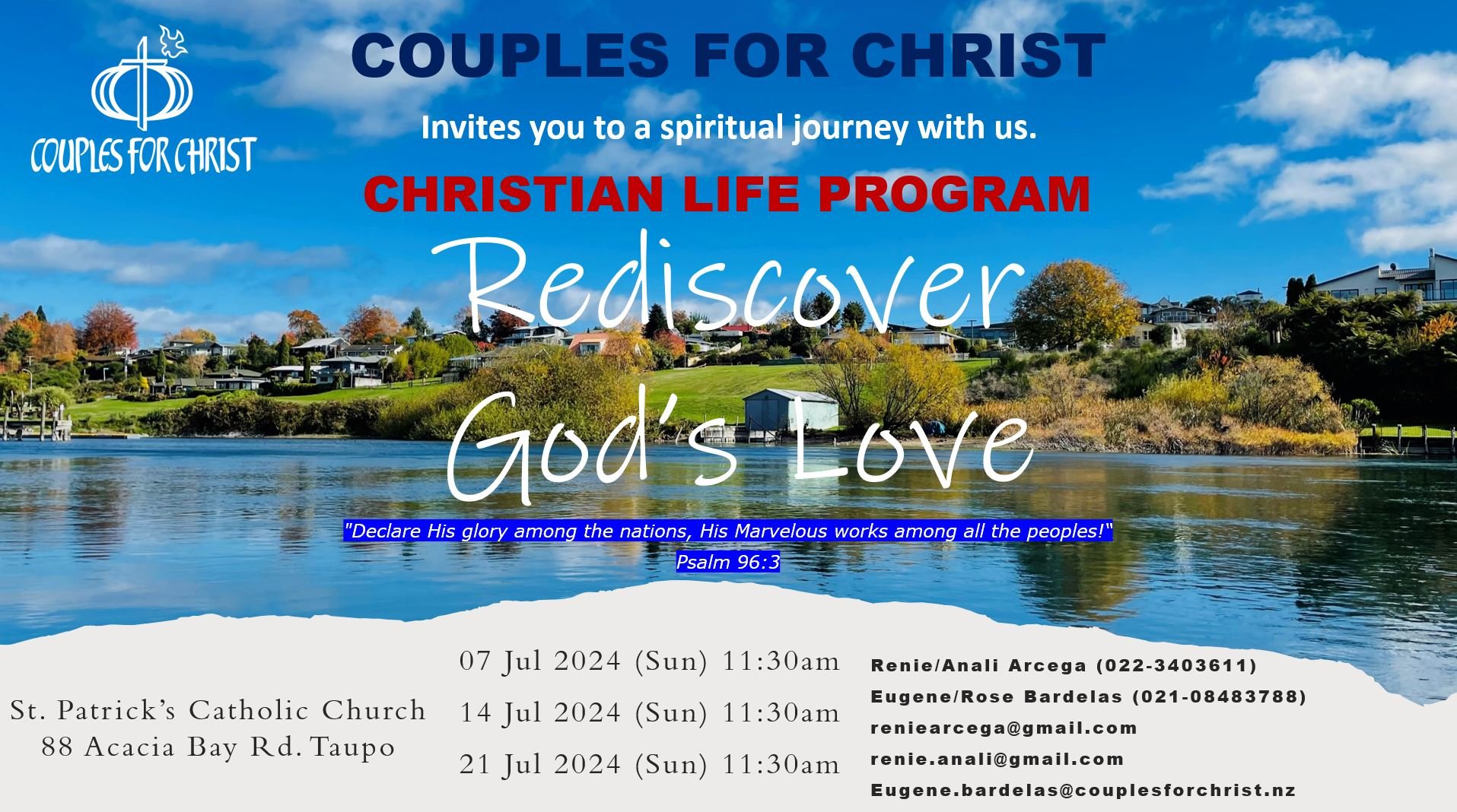 Before 5pm Saturday Vigil Mass, Tūrangi | After Sunday 9am Mass, Taupō